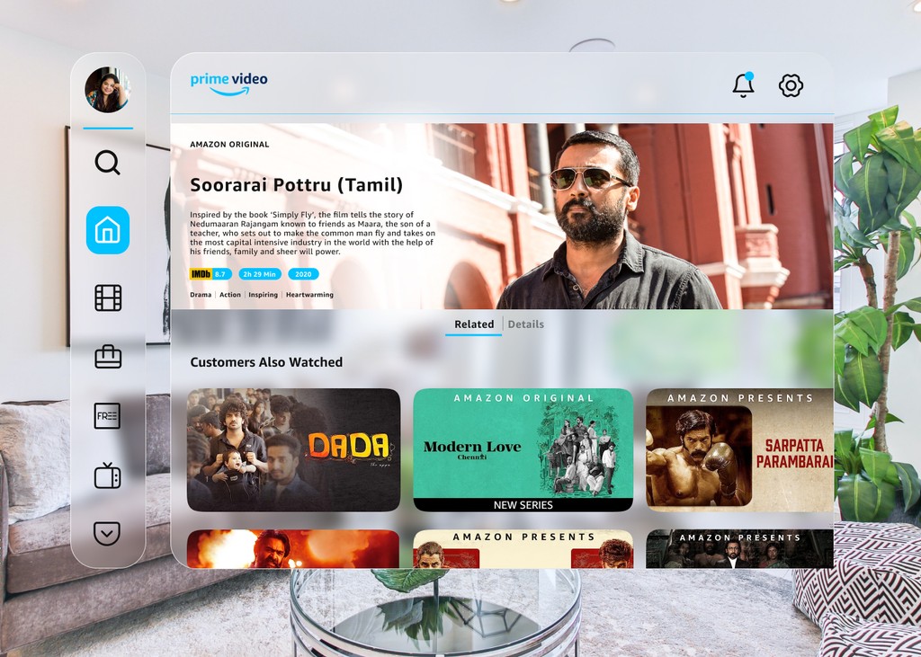 An AR user interface for Prime Video, elevating the streaming experience with immersive features and interactive content.